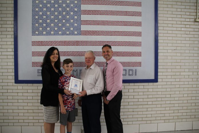 Each attendee will receive a commemorative parade book, the cover of which was designed by Marco Mazzoni, a sixth-grade student at Poquessing Middle School in Feasterville who won the township’s annual design competition. Mazzoni was recently presented with a certificate of commendation and a $100 award by Poquessing principal Joann Holland, assistant principal Timothy Hunt, and co-chairperson and township supervisor Shannon.