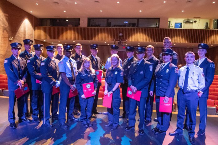 Bucks County Community College, the third-largest public-safety training provider in the U.S., recently recognized 18 volunteer firefighters who completed Fire Fighter I national certification training through the college-run Bucks County Public Safety Training Center.