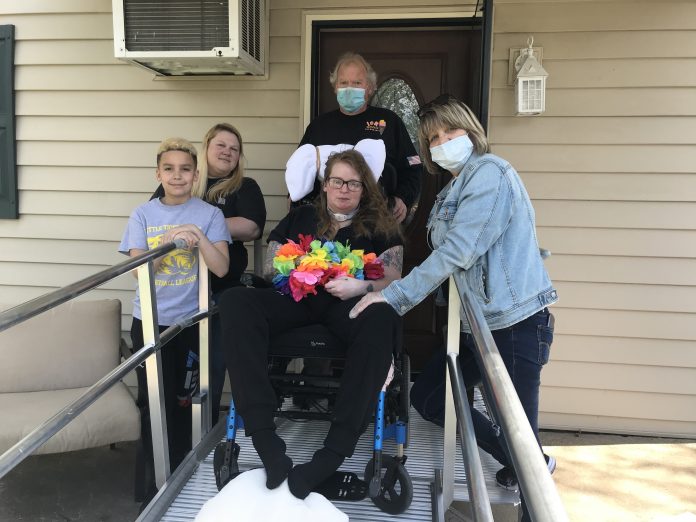 On Saturday, April 25, more than 50 cars drove by John’s house on Harris Avenue. Katelynn was outside, watching family and friends honk their horns, wave, hold signs and shout words of support. Some dropped off cards and gifts.