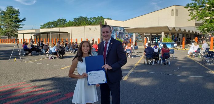 An intimate, socially distant ceremony was held outside on Tuesday, June 16, in the school’s East Campus bus dock area, for the students and their immediate family members.