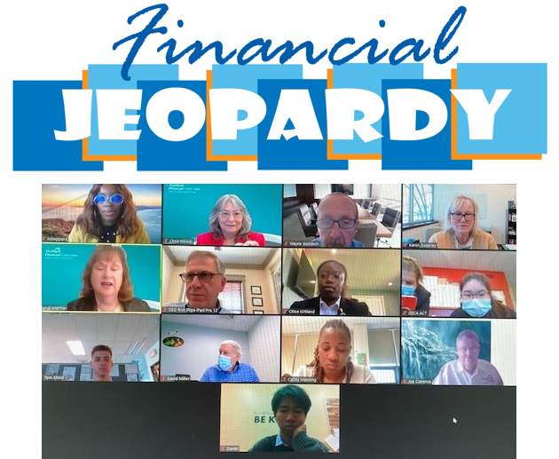 Prior to COVID, the credit union hosted a game-like competition with a 10×10 screen where participants were given clues focused on personal finance subjects, and the room was staged with podiums and buzzers, much like the television version of Jeopardy!.