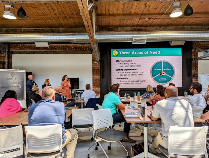 On July 20, at the PLP Partner Innovation Summit, which convened nine partner districts working to transform learning and leadership using brain science, Truman presented the work it’s done so far, which revolves around ninth grade, a difficult transition year for students. Skolnik praised Truman’s presenters Craig, teachers Adrienne Lutz and Devon Spiller, and Martesi, who was there via video recording.