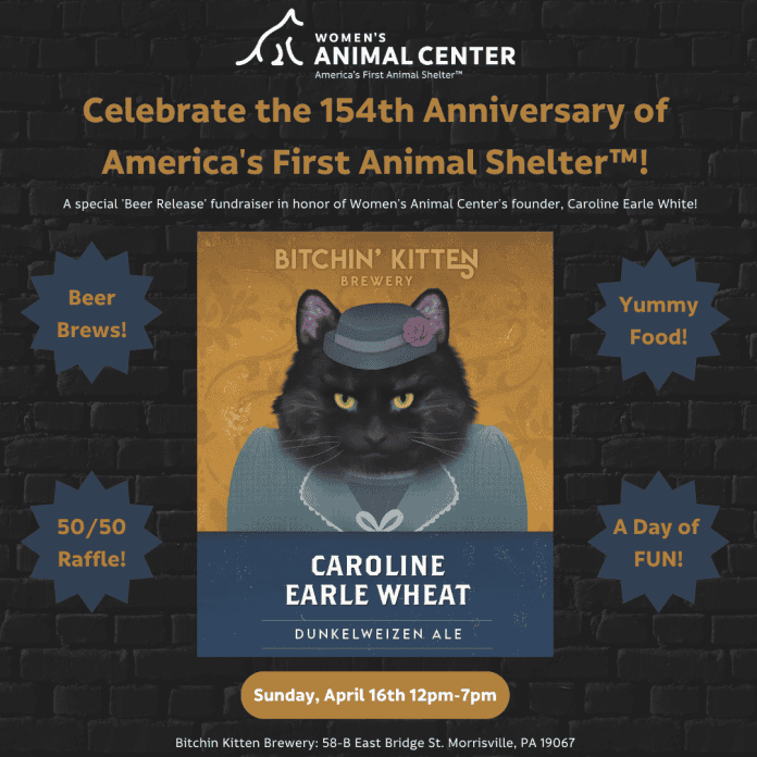 On Sunday, April 16, at Bitchin’ Kitten Brewery, 58-B E. Bridge St. in Morrisville, Women’s Animal Center is toasting its founders and inviting the community to join the organization for a special anniversary celebration.