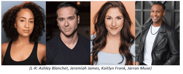 Jeremiah James, Jarran Muse, Ashley Blanchet and Kaitlyn Frank lead the cast of the stage adaptation of the Hollywood musical. James, who plays Bob Wallace, recently appeared in the Broadway company of Funny Girl with Lea Michele. He also appeared as part of the Playhouse’s 2023 Gala. Muse, who appears in the role of Phil Davis, was in the original Broadway cast of White Christmas and most recently appeared on Broadway in Ain’t Too Proud. Blanchet, who stars as Betty Haynes, was recently seen on Broadway in Waitress and as Elsa in Frozen. Frank, who plays Judy Haynes, was recently seen on Broadway in Funny Girl.